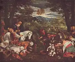 The Israelites continue their journey into the desert, and once in the Wilderness of Sin, they complain about the lack of food. Listening to their complaint, God sends them a shower of quail, and subsequently provides a daily shower of manna from heaven.
