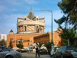 The Commercial Centre of Portela (Portuguese: Centro Comercial da Portela), hosts one of the higher building in Lisbon, Concórdia (80 m), the Church of Cristo Rei da Portela, the Parque Desportivo da Associação dos Moradores da Portela, the Seminary of Olivais and the parks of Almeida Garrett and Descobertas, are examples of the urban social and cultural structures that have attracted residents to the area in the past.[2] The Centro Comercial is situated in the heart of the civil parish, at the former-centre of the communities traditional centre. It was remodelled and reinvigorated to include new shops such as computer and technology, spas, clothing/apparel outlets and shoe shops, in addition to banking.[2] The Church of Cristo Rei da Portela is the pride of the Catholic faith community; erected slowly, through local contributions, it is a significant modern architectural design uncommon to the other Portuguese styles. The parish has a Complex with two pools, that is operated by the municipal company GesLoures. One pool of the Complex (25 x 12,5 meters) is used for swim competitions, training and more advanced classes, while the other (12.5 x 8 metres) is used for more basic swimming classes.[2] The facilities were one of the few buildings to the constructed to be energy efficient, recycling energy, utilizing solar panels and reducing the consume of energy and emissions of carbon dioxide.[2] The Parque Desportivo has three tennis courts and field, an esplanade and a swimming pool. Generally, the parish is a linear alignment of roads, comprising a hundred 10- to 12-storey buildings, that form a rectangle which has a circular shaped shopping centre and a 20-storey tower at its very middle point.