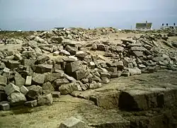 Portland Bill has a number of listed buildings. The current lighthouse, along with its boundary walls, is Grade II Listed.[19] The Old Lower Lighthouse, including its boundary walls and coastguard house, is also Grade II Listed,[20] as is the Old Higher Lighthouse, its four cottages and boundary walls.[21] A 19th-century Fisherman's hut is Grade II Listed,[22] while Red Crane, part of a disused stone loading quay, which is protected as a scheduled monument.[23]