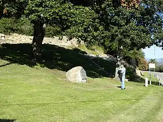 The Portolá Trail Campsite or Portolá Trail Campsite No. 1 is the spot of the first Europeans to travel and camp overnight in what is now Central Los Angeles, California. The Portolá expedition camped at the site on August 2, 1769. The Portolá Trail Campsite No. 1 was designated a California Historic Landmark (No.655) on Sept. 26, 1958. The Portolá Trail Campsite is located in what is now the Elysian Park entrance, at the NW corner of North Broadway and Elysian Park Drive in the City of Los Angeles in Los Angeles County. The campsite is near the Los Angeles River, which they used as their water supply for the camp.[1] Military officer Gaspar de Portolá was the commander of the expedition for the Spanish Empire with the goal of the Spanish colonization of the Americas. The expedition led to the founding of the first mission in the Los Angeles Basin, the Mission Vieja, on September 8, 1771, and of Alta California. The expedition arrived at Portolá Trail Campsite No. 1 from the San Gabriel Valley, were the Mission San Gabriel would be built later in 1776. As they depart Portolá Trail Campsite No. 1 they traveled west towards Santa Monica Bay, stopping at Portolá Trail Campsite 2, which is in present-day Beverly Hills. Portolá Trail Campsite 2 is also a California Historic Landmark (No.665). At San Monica Bay the expedition turned and traveled north to were the future Mission San Fernando would be built in 1797. Form San Fernando the expedition turned west to Ventura, the site of the future Mission San Buenaventura built in 1782.[2][3][4][5][6][7][8]