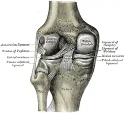 - ^ Edwards, A.; Bull, AM.; Amis, AA. (Mar 2007). "The attachments of the fiber bundles of the posterior cruciate ligament: an anatomic study". Arthroscopy. 23 (3): 284–90. doi:10.1016/j.arthro.2006.11.005. PMID 17349472.