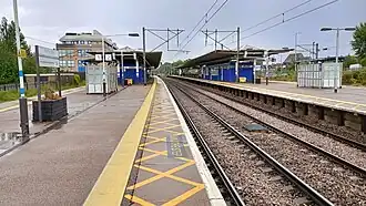 Potters Bar railway station serves the town of Potters Bar in Hertfordshire, England. It is located on the Great Northern route, 12 miles 57 chains (20.5 km) north of London King's Cross on the East Coast Main Line.[3][4] The station is managed and served by Great Northern,[5][6] with Thameslink services also calling in the peak hours.[7]