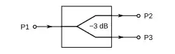 A symbol for power dividers is shown in figure 2. Power dividers and directional couplers are in all essentials the same class of device. Directional coupler tends to be used for 4-port devices that are only loosely coupled – that is, only a small fraction of the input power appears at the coupled port. Power divider is used for devices with tight coupling (commonly, a power divider will provide half the input power at each of its output ports – a 3 dB divider) and is usually considered a 3-port device.[2]