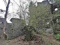 Remnants of the inner bailey, erected around 1200, and several outer walls are preserved. The remains of a Zwinger laid out about 1400 are visible to the southeast of the complex