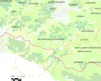 Map of Prats-de-Mollo-la-Preste and its surrounding communes