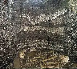 The main archaeological sites on the coast are the middens.[1][32][33][34] Usually, skeletons of ancient Americans, lithic pieces, food remains, are found near them. A large part of the Brazilian middens are covered by the sea, due to the climatic changes that occurred during the late Pleistocene and Holocene. They exist almost everywhere along the Brazilian coast. At the time of their discovery, in the 19th century, they were compared to similar structures in Scandinavia. Middens are associated with the "Itaipu tradition". The people who inhabited the coast are usually defined as semi-nomadic fishermen.[1][35]