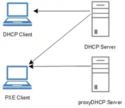 - The proxyDHCP server providing TFTP server IP address and name of the NBP only to PXE identified booting clients.