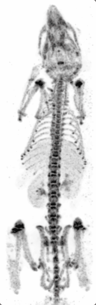 High resolution 99mTc-MDP mouse SPECT scan: animated image of rotating maximum intensity projections.