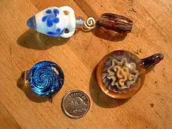 Contrarily, another type of glass bead that has a limited supply, is known as wound beads. Wound beads are far more rare when being compared to drawn beads and the way they are made is by sheathing molten glass around a rod, stick, or wire. Wound beads on the other hand are made by wrapping molten glass around a rod, stick, or wire, then pressed into its shape and placed in a mold or decorated with colors of glass. These Wound beads are far more rare to find due to the limited distributions. These beads are recognized by having their fabric and inclusions encircling the perforation.[1]