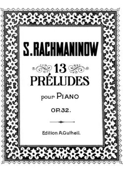 Thirteen Preludes (Russian: Тринадцать прелюдий, Trinadtsat' prelyudiy), Op. 32, is a set of thirteen preludes for solo piano, composed by Sergei Rachmaninoff in 1910.