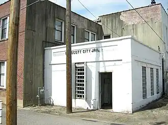 The Prescott City Jail is a historic city jail behind the city hall of Prescott, Arkansas. The modest single-story structure was built for the city in 1912 by the Southern Structural Steel Company. It is built of reinforced concrete, with metal grates covering unglazed window openings, and a doorway that is reinforced with heavy metal shutters. It was built to replace an early jail, from which a suspect involved in the burglary of a prominent citizen's home had escaped, in part due to its poor condition. This building, housing three cells, served the city until the 1960s.[2]