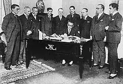 These laws were modest and often circumvented by employers.[76] They were partly motivated by the country's concern with its image abroad, where it was expected that Brazil, as a participant in the International Labour Conferences, would institute the labour rights suggested there.[74] In the same period, under the state of emergency, police raids and union closures became more frequent and strikes were smaller than in the previous decade.[77] Of the governments at the end of the First Brazilian Republic, that of Bernardes was simultaneously the one that most intervened in labour relations and most repressed the labour movement. The direction in which it was pointed was towards official unionism like that implemented by Getúlio Vargas in the following decade.[78] The unions with the largest number of members during this period were the so-called "yellow" ones, with good relations with the government and the police, especially among maritime and transport workers.[79]