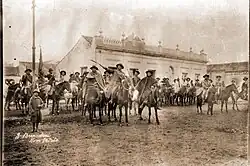 The repercussions of the crisis in Rio de Janeiro were overshadowed by the outbreak of a civil war in Rio Grande do Sul on 25 January. The local opposition, led by Assis Brasil, rose up against the state government of Borges de Medeiros, whose reelection it denounced as illegitimate.[80] At the beginning of Medeiros' new term, "liberator" (oppositionist) leaders such as Artur Caetano, Felipe Portinho, Leonel Rocha, Zeca Neto and Honório Lemes took up arms.[81] With a disadvantage of weapons against the Military Brigade of Rio Grande do Sul and the Provisional Corps, it was left to the "bandoleiros" (bandits), as they were called by the government, to wage a rural guerrilla.[82]