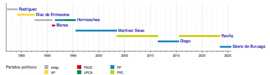 Miguel Ángel Revilla | June 27, 2003 | June 23, 2011 | Regionalist Party of Cantabria (PRC) | |