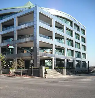 Preston Pointe is a mixed-use commercial and residential building in Downtown Louisville, Kentucky.[2] The building is square in shape with a unique sloped steel roof. The first five floors consist of office space, the sixth and seventh consist of two-story condominiums, and the eighth floor is mechanical space.[3]