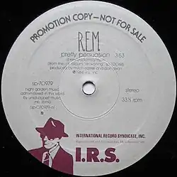 "Pretty Persuasion" is a song by R.E.M. that was first released on the band's 1984 album Reckoning. It was released as a promotional single and reached number 44 on Billboard's Rock Tracks chart.[2] According to R.E.M. biographer Tony Fletcher, it is often regarded as "the 'archetypal' R.E.M. anthem".[3]