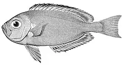 - ^ Christopher Scharpf & Kenneth J. Lazara (22 September 2018). "Order ACANTHURIFORMES (part 3): Families CALLANTHIIDAE, DINOPERCIDAE, EMMELICHTHYIDAE, MALACANTHIDAE, MONODACTYLIDAE, MORONIDAE, SILLAGINIDAE, PRIACANTHIDAE and CEPOLIDAE". The ETYFish Project Fish Name Etymology Database. Christopher Scharpf and Kenneth J. Lazara. Retrieved 27 January 2025.