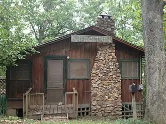 The Princedom Cabin is a historic cabin on the south side of Lookout Drive in Bella Vista, Arkansas. It is a wood-frame structure with one story facing the road, and two at the back of its steeply sloping lot. It is finished in board-and-batten siding, and has a low pitch roof, with a fieldstone chimney prominently placed at the front facade. Built c. 1923, this typical cabin of the period has been modified by enclosing its car port as a sleeping porch and building an open deck between it and the main cabin. It is one of a small number of surviving little-altered 1920s cabins built in the area.[2]