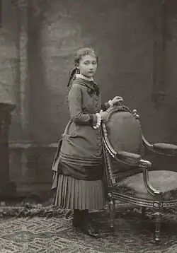 Third daughter of King Leopold II of Belgium and Queen Marie Henriette, Clémentine Albertine Marie Léopoldine of Saxe-Coburg and Gotha was born at the Palace of Laeken on 30 July 1872, at 6 p.m., three years after the accidental death of her older brother Prince Leopold, Duke of Brabant, the King's sole direct heir. The latter nourished the hope of having a second son and had therefore resumed an intimate life with the Queen; but, after a miscarriage in March 1871,[1] another girl is born: Clémentine, the royal couple's last child.[2][3] She was baptized on 3 September 1872 at the Palace of Laeken during a short ceremony, followed by a gala lunch attended by around 80 guests.[4] Her first name pays homage to her godmother and great-aunt, Princess Clémentine of Orléans, while her middle name refers to that of her godfather, Archduke Albrecht, Duke of Teschen, a cousin of Emperor Franz Joseph I of Austria.[5]