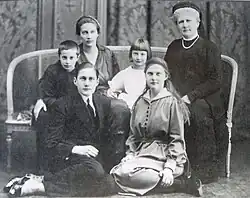 Princess Vera was eight years old when Archduke Franz Ferdinand of Austria was assassinated and World War I broke out, in the summer of 1914. Vera was with her parents and her brother George in Germany visiting her maternal relatives in Altenburg at the start of the war. The conflict took them by surprise, trapping them in Germany, an enemy country. It was thanks to the intervention of the German Empress, Augusta Viktoria of Schleswig-Holstein that they were allowed to return to Russia.[3] Vera's older siblings joined the Russian army in the military effort, and her favorite brother Oleg was killed in action. She was considered too young and was not allowed to attend her brother's funeral. Her brother's death was just the first of many family misfortunes.