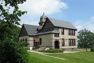 The Princeton Center Historic District is a historic district encompassing the 19th century center of Princeton, Massachusetts. The district is centered at the junction of Hubbardston and Mountain Roads, and includes the town common, town hall, public library, and First Congregational Church. When first listed on the National Register of Historic Places in 1999, the district encompassed 11 acres (4.5 ha), and included only the common, town hall, and library;[2] it was expanded in 2006 to 165 acres (67 ha), and included much of the village of Princeton Center.[3]
