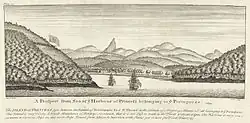 The island's fortress named Fortaleza de Santo António da Ponta da Mina on a point inside Baía de Santo António (Santo António Bay) was built in 1695.[6] In 1706, the city and the fortress were destroyed by the French.[6] From 1753 until 1852, Santo António was the colonial capital of Portuguese São Tomé and Príncipe.[8]
