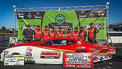 The Pro Modified class originated in the UK in 1988,[1] and was followed in the USA by the IHRA a year later. In Europe, Pro Modified moved from the NDRS to become an FIA class in 2006. The off season between the 2009 and 2010 seasons was the most controversial in years. The IHRA, the first sanctioning body to run the class in the USA, dropped the class in a move to focus more on nitromethane powered vehicles. Picking up where the IHRA left off, the NHRA announced that through a partnership with Get Screened America, Pro Mod would become a full-fledged professional class, running a limited schedule but still competing for national event trophies and a world champion.