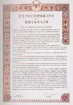 ![]() Malay-language Proclamation of Malaysia, written in the Jawi script | |