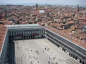 view of Saint Mark's Square Procuratie Nuove (left), Procuratie Nuovissime (centre), and Procuratie Vecchie (right) | |