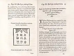 The presses of the Propaganda Fide already had typesets for Greek, Arabic, Hebrew, and Ethiopian at the time Prodromus was published,[3] but there was no typeset for Chinese characters.[7]: 33 A new typeset for the Coptic alphabet had to be created specially in order to print the work,[8]: 14 which has been described as "a tour de force of seventeenth-century typography."[4]: 4