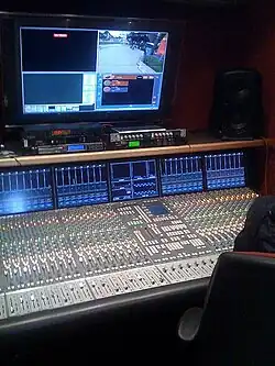 - Audio mix engineer (A1) (also known as audio mixer, audio director or sound supervisor) – The A1 mixes the sounds that the audience will listen to. They will mix the assorted sounds such as crowd noise, effect sounds, announcers, etc. They route the different sources of sounds from microphones, cameras, discs, video tapes, telephones, EVS, or outside audio sources, into the audio mixing board for control. They are also in charge of ensuring the audio is successfully being transmitted. They also ensure the intercom is working for every station in the production, as well as dial-up coordination with a network director.[16]