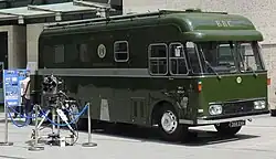 One of the BBC's early Outside Broadcast vehicles, MCR 1 (short for Mobile Control Room), was built by the joint Marconi-EMI company and delivered to the BBC just in time to televise the Coronation of George VI and Elizabeth in May 1937.[4] MCR 2 was identical to MCR 1 and was delivered in the summer of 1938. The MCRs could handle three cameras. Initially, they were standard Emitrons, but were later supplemented by Super Emitrons, which performed much better than the standard ones in low light. The MCRs were built on the chassis of an AEC Regal single-decker bus.