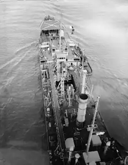 The World War II tanker Mission Capistrano was selected and modified for deploying the array. The T2 tanker hull had sufficient space and structural integrity to allow installing array power and control systems and creating a large center well through which the array could be housed, lowered and operated.[18][41] On 28 August 1958 specifications for conversion were completed with a contract for conversion with Avondale Marine Ways let on 7 January 1960. The ship engaged in array tests and was further modified until 3 November 1962 when the array was removed at Philadelphia Naval Shipyard and the ship released for other work until re-installation the next March.[34]