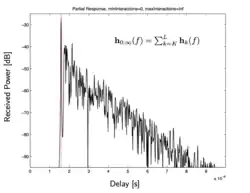 Closed form expressions are available for partial sums, i.e. by considering only some of the terms in the transfer function. The partial transfer function for signal components propagation via at least and at most interactions is defined as where Here denotes the number of interactions or the bouncing order.