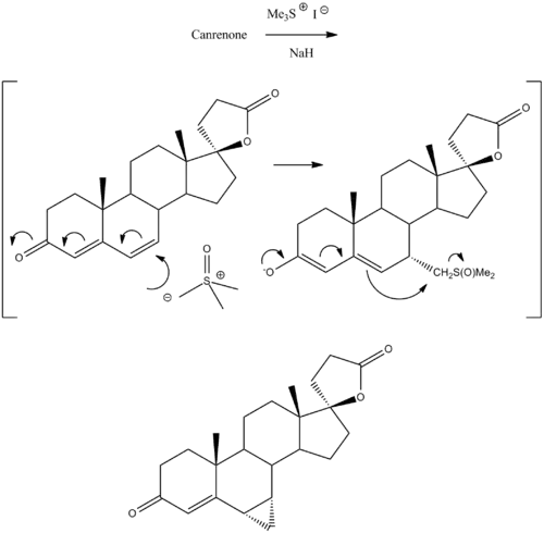 Prorenone can be synthesized via a Johnson–Corey–Chaykovsky reaction by reaction of canrenone with trimethylsulfoxonium iodide and sodium hydride.[5]