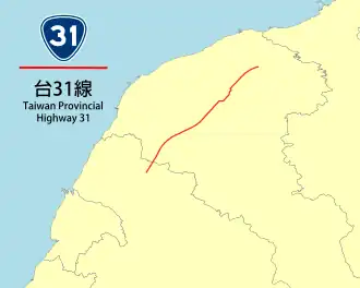 Provincial Highway 31 (Chinese: 台31線) is a 30.036-kilometre-long (18.664-mile) provincial highway in Taoyuan City, Taiwan. An elevated section of the Taiwan High Speed Rail viaduct and under-tunnel acts as a median for most of the highway, except when the highway is near THSR Taoyuan Station and when the highway is near and on its southern terminus.[2] The highway serves the THSR Taoyuan Station.