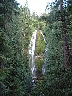 Proxy Falls, also known as Lower Proxy Falls, is a cascade and plunge waterfall from a collection of springs on the shoulder of North Sister, that plunges into a gaping canyon near McKenzie Pass in the Willamette National Forest, near Belknap Springs, Oregon. The waterfall is notable for its main drop of 226 feet (69 m) which makes it one of the highest plunge waterfalls in Oregon.[1][2]