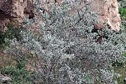 Prunus scoparia is a wild almond primarily found in the Zagros forests of Iran[1] but also distributed across Turkey, Turkmenistan, and Afghanistan. It is a xerophytic shrub and it has been used as a grafting stock for domesticated almonds to provide drought resistance.[2][3]