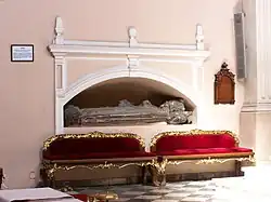 ![]() A sculpture atop a ducal tomb in Cieszyn from the beginning of the 15th century | |