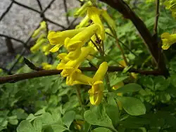 Pseudofumaria lutea (syn. Corydalis lutea), the yellow corydalis or rock fumewort,[3] is a short-lived perennial plant in the poppy family Papaveraceae. It is native to the southern foothills of the south-western and central Alps of Italy and Switzerland, but widely introduced elsewhere.