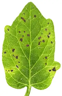 - ^ Roberts R, Mainiero S, Powell AF, Liu AE, Shi K, Hind SR, et al. (2019). "Natural variation for unusual host responses and flagellin mediated immunity against Pseudomonas syringae in genetically diverse tomato accessions". New Phytologist. 223 (1): 447–61. Bibcode:2019NewPh.223..447R. doi:10.1111/nph.15788. PMID 30861136.
