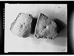 Originally, Sepkoski (2002) suggested the possibility of the problematic fossils as being a Jellyfish.[1] Although a more modern and updated interpretation of P. howchini is it being a pseudo-fossil or a structure caused by the Holdfast of a Petalonamid being pulled out by the currents. Pseudorhizostomites tends to occur around very thin impressions and casts of fossils which are the likely producer of Pseudorhizostomites if they decayed.[3] The decayed parts of the organisms preserved alongside the biogenic structure were also interpreted as escaping through an overlying sand lamina.[4] The species Rugoconites tenuirugosus was thought to be the originator behind P. howchini; the fossil was also compared with the living Hydrozoan Campanularia.[4]