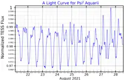 Psi2 Aquarii, Latinized from ψ2 Aquarii, is the Bayer designation for a star in the equatorial constellation of Aquarius. It is visible to the naked eye with an apparent visual magnitude of 4.4.[2] Based upon parallax measurements made during the Hipparcos mission, the distance to this star is roughly 400 light-years (120 parsecs).[1]