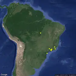 It occurs in the southeast of Brazil (Minas Gerais, Rio de Janeiro, São Paulo).[5]