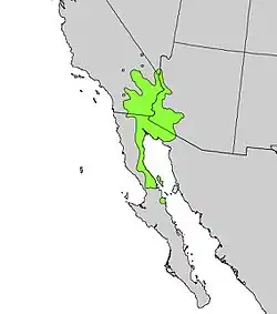 To the west in Baja California it borders the western Gulf of California; it occurs on the islands there including Isla Ángel de la Guarda, but not Tiburon Island.[2] To the east in Sonora, the species ranges into the northwest of the great Gran Desierto de Altar, on the northern shore of the Gulf of California.
