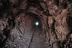 The Ptarmigan Tunnel was built in 1930 through the Ptarmigan Wall at an elevation of 7,200 feet (2,200 m) in Glacier National Park, near Many Glacier, in Montana, US. The 250-foot (76 m) manmade tunnel allows hikers to avoid a strenuous climb over very steep terrain between Many Glacier and the Belly River valley. Two opposing steel jackhammers drilling from either side of the tunnel and a series of ten-hole rounds of dynamite gradually broke through the mountain in less than three months.