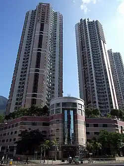 Heng On Estate (Chinese: 恆安邨) is the first public housing estate in Ma On Shan. It consists of seven residential buildings completed in 1987.[13] It is a mixed estate built on reclaimed land[7] between Ma On Shan Road and Sai Sha Road. Some of the flats were sold to the tenants through Tenants Purchase Scheme Phase 1 in 1998.[14] The Heng On Estate Commercial Centre and Central Garden received a Certificate of Merit at the 1989 Hong Kong Institute of Architects Annual Awards.[15][16]