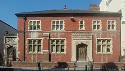 Until 1808, the Hundred court responsible for enforcing the law and keeping the peace in Brighton was held at Lewes, the county town. From that year, the growing importance of Brighton prompted the establishment of a court (the Court of Whalesbone) at the New Inn (now the Royal Pavilion Tavern) on Castle Square on Mondays, Wednesdays and Fridays. Petty sessions were also held at the Old Ship Hotel starting in 1812. The venue alternated between the hotel, Brighton's original town hall and the New Inn until 1832, when the town hall became the court's permanent home.[22] Brighton's Court of quarter sessions was established at the town hall on 26 March 1854 and remained there except for a two-year period between 1897 and 1899 when they moved to the old library while the town hall was rebuilt.[23] County court proceedings were held at the town hall from 1847; venues on North Street and Prince's Street were then used temporarily until a new building opened on Church Street in 1869. This two-storey red-brick Tudor/Gothic Revival structure had two courtrooms and remained in use until 1967, when a new £665,000 complex of juvenile, magistrate's, coroner's, county and Crown courts opened on Edward Street. It was designed in a Modernist style by Borough Architect Percy Billington. An extension was built to the rear in 1985, and the entire complex was refitted between 1986 and 1989 (necessitating a temporary move to the former Board of Guardians Parochial Offices on Prince's Street) to provide eight magistrate's courts and three Crown courtrooms (reduced to two before 2007).[24] The old courthouse on Church Street, designed by Charles Sorby, is now Grade II-listed and is now used as a museum and lecture room.[25][26][27]