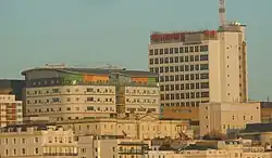 The Hove Commissioners, forerunners of the local council, "began to take electricity seriously" in the 1880s.[130] An Electric Lighting Committee was formed in April 1890 to consider the options. A private company, the Hove Electric Lighting Company, was formed shortly afterwards: its first act was to buy land at the junction of Holland Road and Davigdor Road to build a generating station, followed by the laying of mains. This started in 1893 and was still going on when the Commissioners bought out the company in 1914. Work also started in Aldrington parish around this time.[131] A second generating station operated at Leighton Road in Hove between 1902 and 1928.[126] The Holland Road facility was demolished in the 1980s and the site was redeveloped.[132] Portslade residents were supplied by Brighton Corporation but paid a surcharge until 1931.[126]