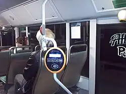 The front validators on buses, trolley buses and trams support contactless and QR-code-based methods of validation. One-hour tickets can be bought with contactless bank card from the ticket/validation machine. Day tickets are also available. The system tracks passengers' usage and charges their bank account for the cheapest ticket they are entitled to, either one-hour tickets or a whole-day ticket. Buying a ticket with cash was discontinued in buses, trams and trolleybuses in 2020.[36] Card and cash payments are available on commuter trains. Commuters who have Elron's Transport card can load money to the card to purchase a ticket from the ticket machine located in all train entrances.[37][38]